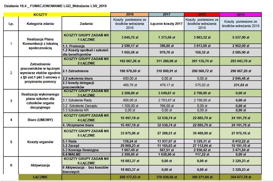 Strona główna > DZIAŁO SIĘ W LATACH 2007-2024 > STRATEGIA 2016-2024 > O STRATEGII 2016-2024 > O LGD > Informacja o sposobie wykorzystania środków finansowych w ramach Funkcjonowania LGD w roku 2019