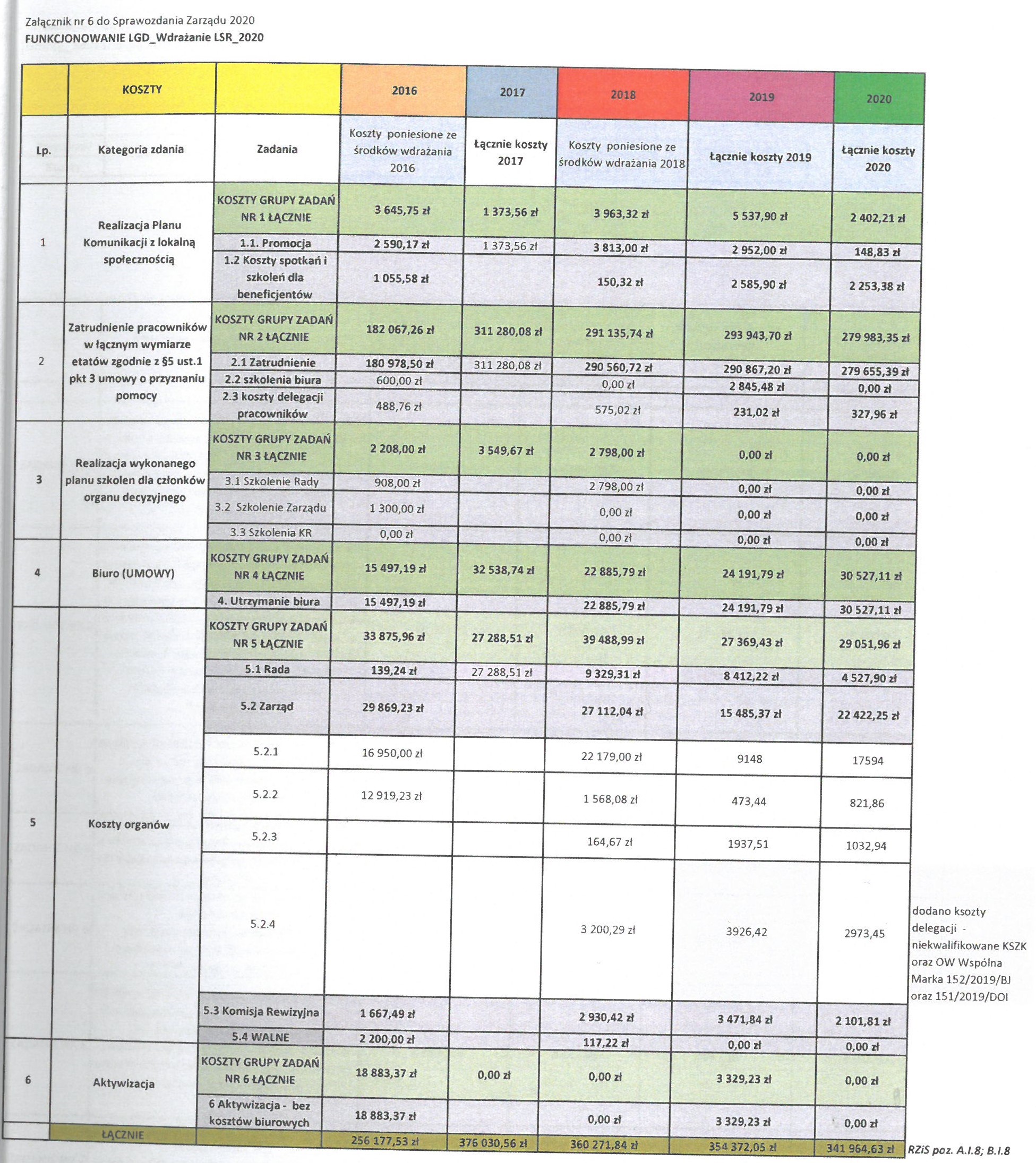 Strona główna > DZIAŁO SIĘ W LATACH 2007-2024 > STRATEGIA 2016-2024 > O STRATEGII 2016-2024 > O LGD > Informacja o sposobie wykorzystania środków finansowych w ramach Funkcjonowania LGD w roku 2020